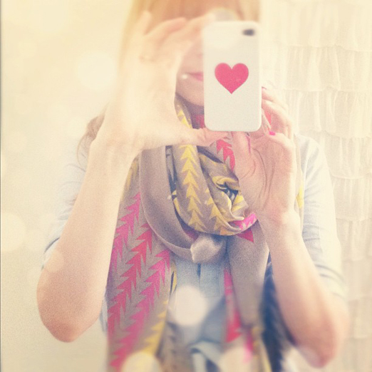 you know how every once in awhile you stumble across something in a store or online and feel like it was made just for you? that's what happened with me and this marc jacobs scarf. it felt like christmas when it came in the mail today and you can bet your cute butt it will be wrapped around my happy neck for a long, long time. and that sweet iphone case, made my my gal pals over at ban.do, in case you're interested. i feel like a bazillion bucks all decked out in pretty! {photo from my instagram : sarahyates }