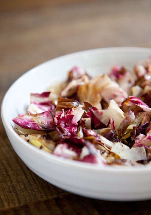 place quartered radicchio and halved endives onto a hot grill (or in my case, a grill pan, which i am mildly obsessed with!) *use refined coconut oil to grease the pan if you go that route