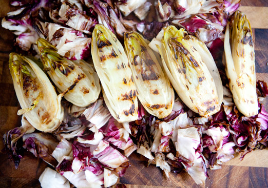 once the radicchio and endives are fully cooked, remove from grill and chop into salad bite sized pieces.
