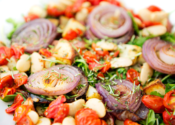 WARM ROASTED HERBED VEGETABLE AND BEAN SALAD