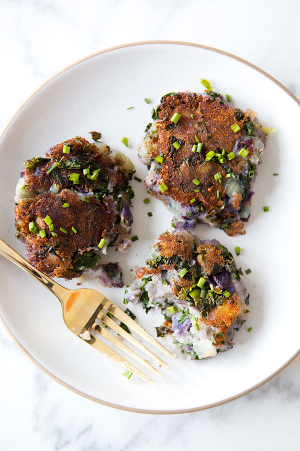 I made these last night and the mixture was so yummy, the only thing was that the cakes didn't form as firmly as I was expecting. Not sure if it's because my potatoes were very mashed or not cooled enought before I made them into balls or if I used EVOO to crsip on both sides. I just couldn't get it to be firm so I am going to try again and use coconut oil or vegan butter. Even just mashed they were delicious! This is probably the 8th recipe I have made from this blog in the last 2 months and everything has always been easy, simple and delicious!