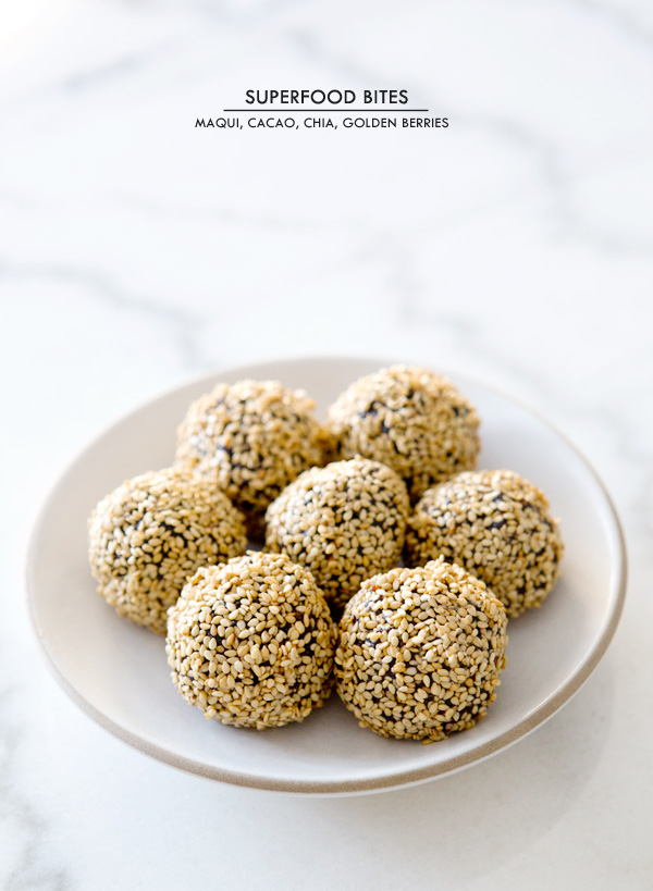 Since the temperatures have dropped and I'm no longer loving smoothie bowls in the mornings I've been on the hunt for tasty ways to incorporate my favorite super foods into my routine. And these balls (heh) are the perfect answer! They're easy to throw together and perfect to grab for a quick energy pick-me-up snack when I need it. Full of superfoods AND the insanely healthy walnuts, they're pretty much like taking a big ol' bite of health. WIN WIN WIN. Hope you love! And have a fantastic weekend friends! xx- Sarah {more after the jump}