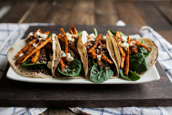 Crispy quinoa and mole sweet potato tacos from naturally ella