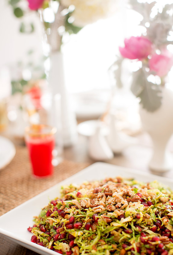 next up we have a shaved brussel sprout salad with pomegranate in a mustard vinaigrette. this is another dish that can be prepared in advance and dressed at the last minute. it also sounds impressive when your guests ask what it is... "oh nothing, just a little shaved brussel sprout and pomegranate salad i threw together". RIGHT?!