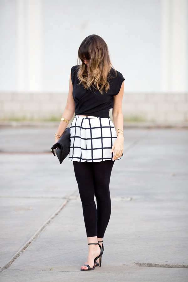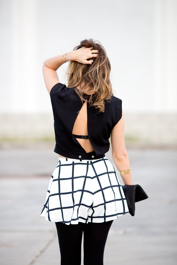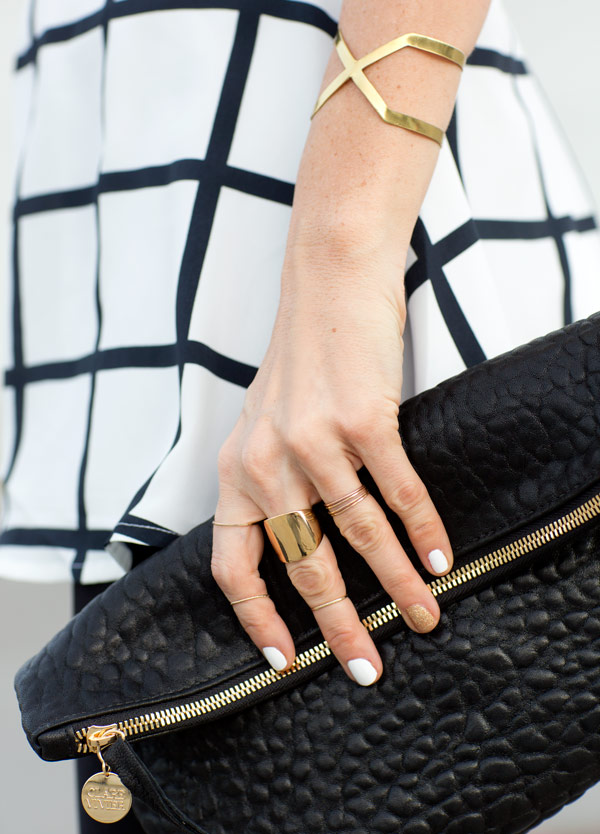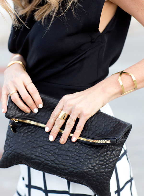 SHOP THIS OUTFIT:  shirt: Robert Rodriguez, shorts: Finders Keepers, shoes: Zara (old, similar), clutch: Clare Vivier, bracelets: Young + Frank, Giles + Brother, ring: Jules Smith