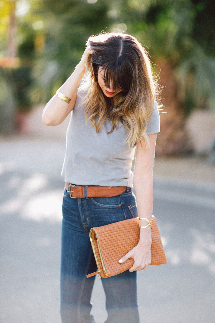 SHOP THIS OUTFIT: Jeans: Marc Jacobs (similar), Tee: Gap, Shoes: Dolce Vita, bag: Clare Vivier, ,bracelet: Young + Frank