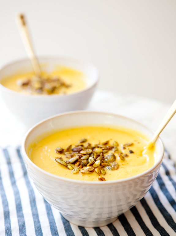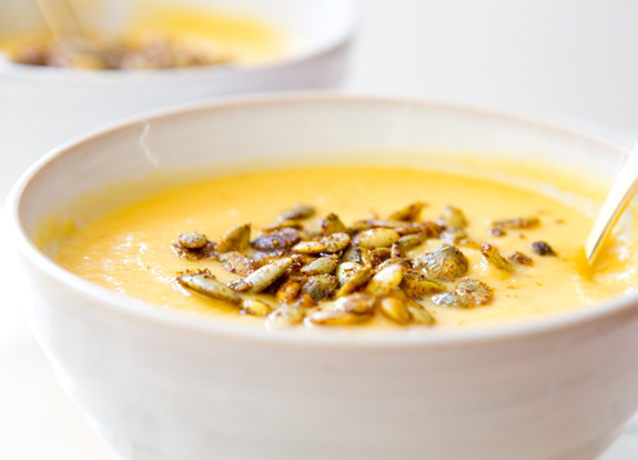 i had this moment in the grocery store the other day where i realized that we're almost at the end of the very last scraps of winter produce.  and like some crazy squash hoarder i started grabbing at the butternuts.  i'm going to make a couple batches of this soup to freeze because i hate the idea of waiting until october to have butternut squash soup again.  is that crazy?  maybe i'm a kooky squash hoarder or suffering from some other squash related mental disorder.  something to ponder while i'm roasting 55 batches of butternut.  xx- sarah  {more after the jump}