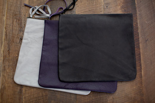 bash please hosted a pop-up shop the other night for heather heron and i brought home these three rad bags (the purple one is a birthday gift for my friend margaux). they're the softest leather and so versatile they'll go with just about anything. can't wait for the chance to bring these out to play!