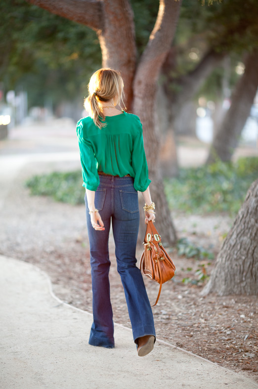 Great jeans! It seems I am always in skinnies these days, but a good flare is so lovely, need to break my habit. Love the green, too, it's one of my favorite shades du jour.