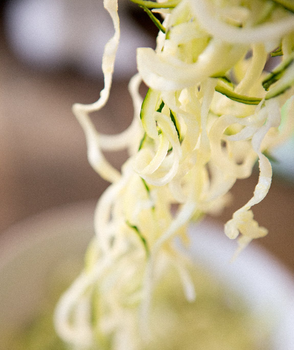 ok, don't hate me! i know this is the second raw meal in one week and you're probably somewhere cold and craving holiday goodies and soups.  but i can't help myself!  i was so excited to try this raw zucchini pasta after spotting some in the erewhon pre-made food section. i have a serious love of spaghetti but i don't eat it that often because i don't have a pasta maker and try my best to avoid processed foods.  so i've been on the hunt for something to fill that pasta-loving hole in my heart!  and i promise, even though it's not cooked it's still really satisfying and yummy.  the tool to make the zucchini pasta, a spiralizer, is not expensive and can be used for all kinds of fun things (like the daikon i love to et with my sushi)! recipe and probably a few too many photos after the jump...