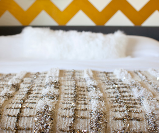 Beautiful bedroom! A Moroccan wedding blanket has been on my wish list for some time - very jealous haha.