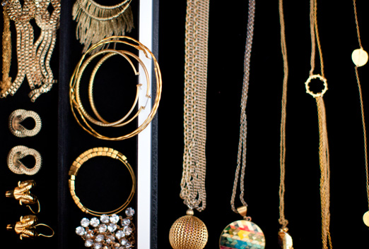 i found these black velvet display cases at the container store for my necklaces. and i edited. anything that didn't feel entirely ME anymore- gone. just my most favorites made it into the drawers. i'm hoping this will also keep me in check with my consumerism- if i know i have to lose something that i have in order to bring something new into the collection i'll think long and hard before making a purchase.