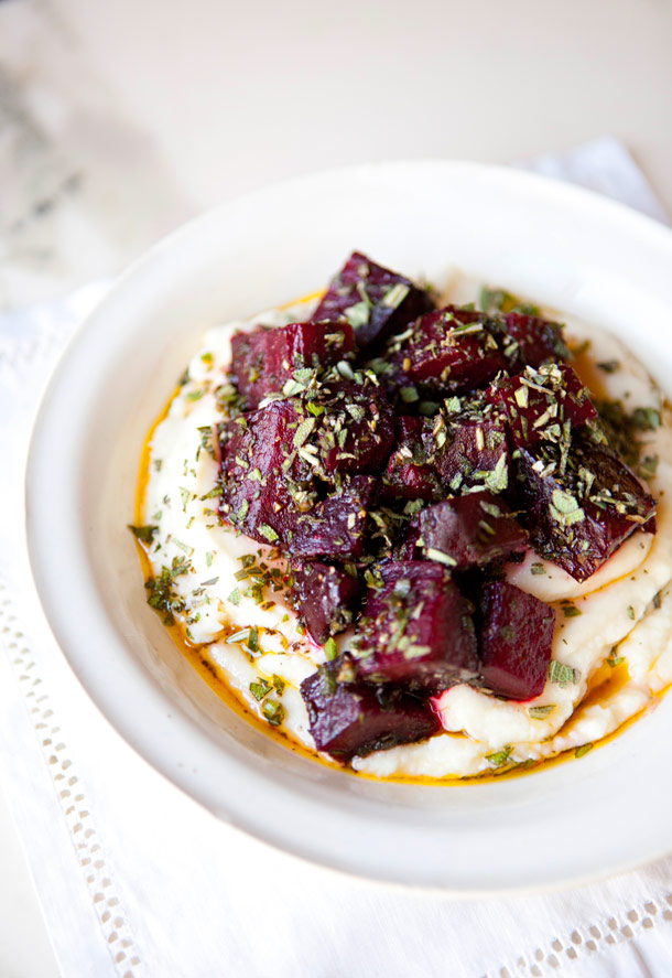 I shared this recipe on Camille Styles yesterday, but it's such an extra-delicious one that I want to make sure it gets into the archives over here too. Let me tell you, celery root puree may just be my new favorite thing. Just typing the words makes me salivate a little. That's totally normal. Try it, you'll see! Paired with these earthy roasted beets, tons of fresh herbs, a rich and delicious olive oil- it's downright decadent. Happy weekend friends, hope yours is a tasty one! xx- Sarah {more after the jump!