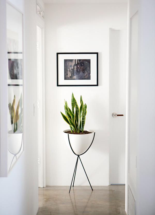 I love decorating the little spaces in a house as much as the big spaces. Creating a pretty something to look at in the hallway, a vignette on a patio, sprucing up a corner of a room that could easily be left un-decorated... I LOVE IT ALL! We recently a plant and a black and white photo to our hallway, keeping it simple and sweet. But it's amazing how much more lived in the house feels when these little spaces have something pretty happening! See more of our house decorating progress HERE if you please! xx- Sarah {planter via Gilt, plant is a snake plant)