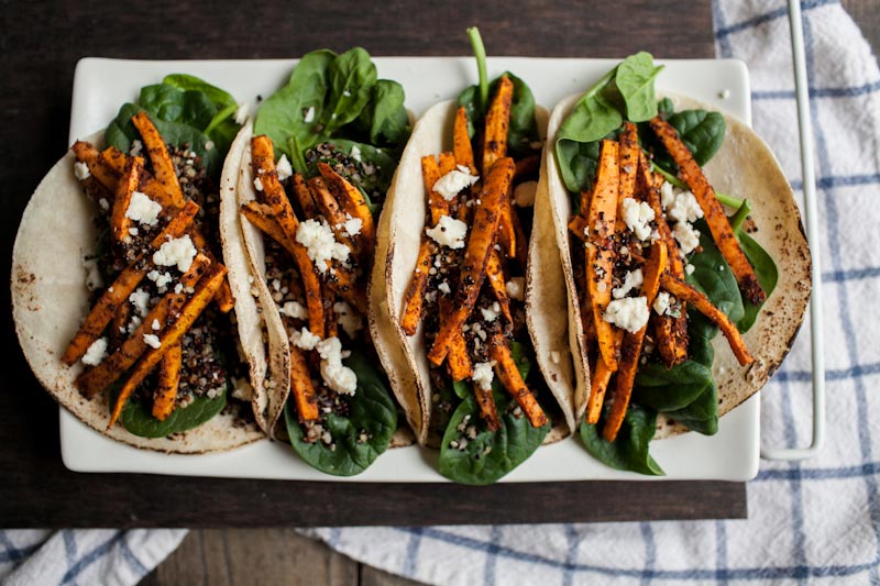 Crispy quinoa and mole sweet potato tacos from naturally ella