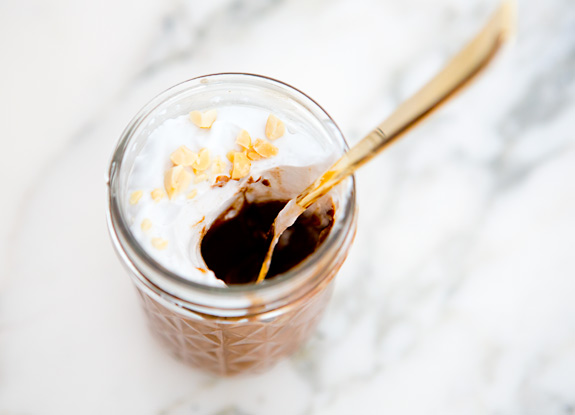 chopped peanuts to garnish (or go wild with sprinkles, get sophisticated with a sprig on mint, etc)