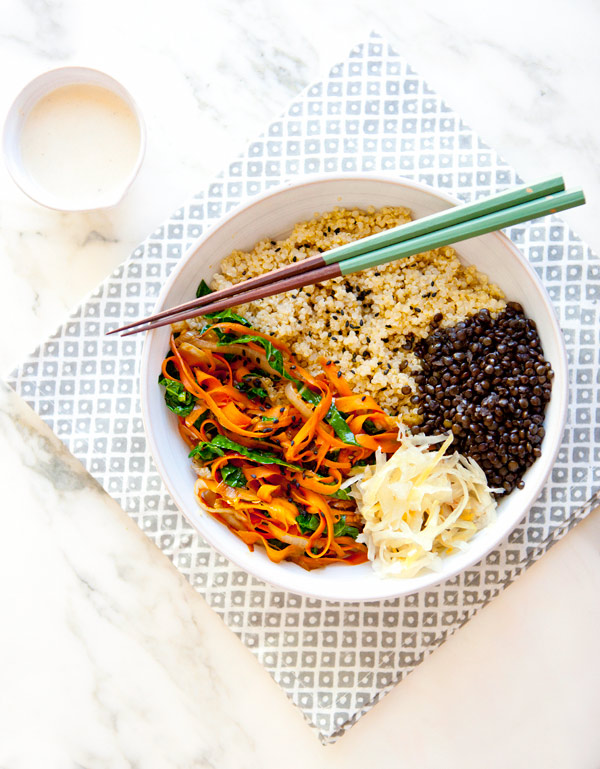 - last up is a dressing. i love a good lemony, garlicky tahini dressing. again, i used leftover from this meal, so there's a recipe there if you need it! a miso dressing is another favorite. i'll share that another day.