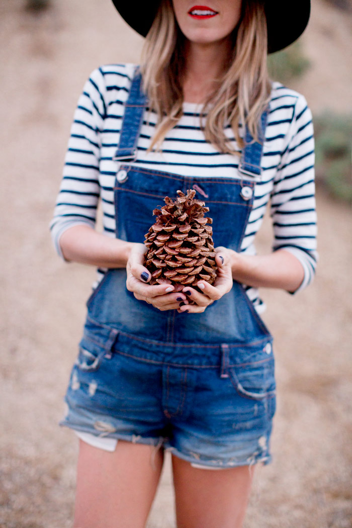 SHOP THIS OUTFIT: overalls: Zara, shirt: Edith Miller (similar), hat: Rag and Bone, booties: Minnetonka (another pair i love), lips: Kat Von D "A Go-Go"