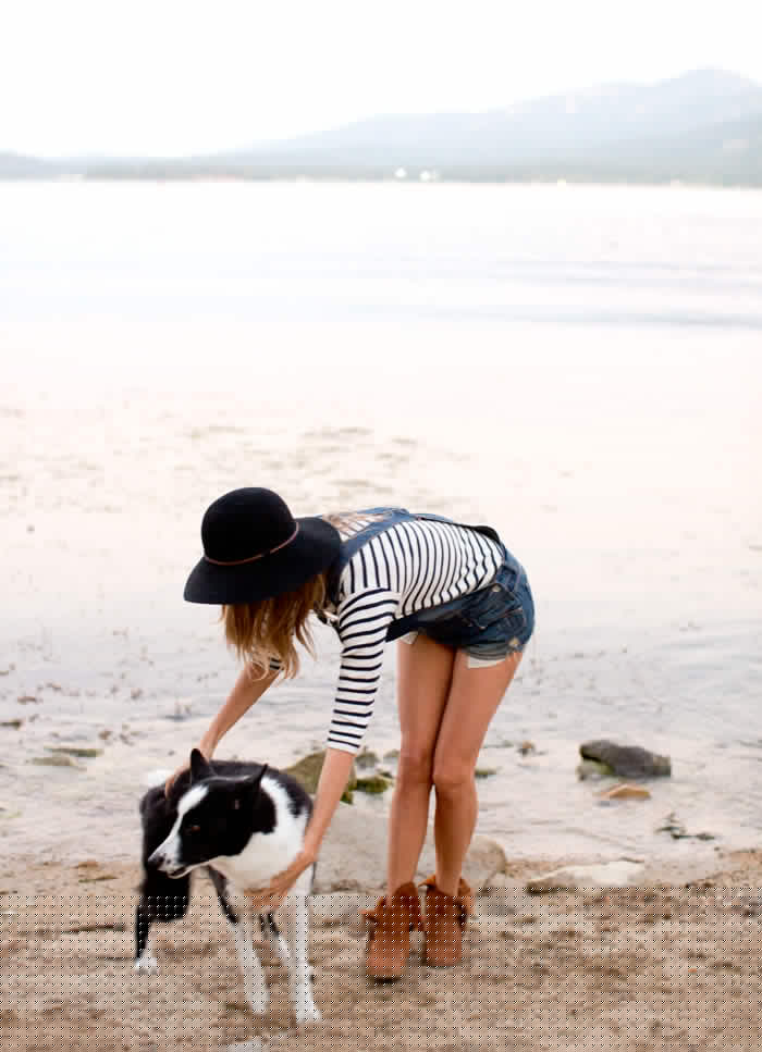 Can we talk about how frickin' cute you look?! These photos make me want to buy some cut off overals & little Indian-like fringe booties and head to some water...likely a river, because let's be honest, there are no nice beaches in Ottawa, Ontario...and take some photos with...well, I don't have a dog, per say, but maybe a segul would do? REGARDLESS!! You look AMAZING. This outfit is soooo awesome and just wonderful... despite Bean not wanting to cooperate :)
