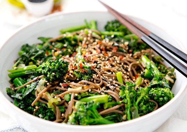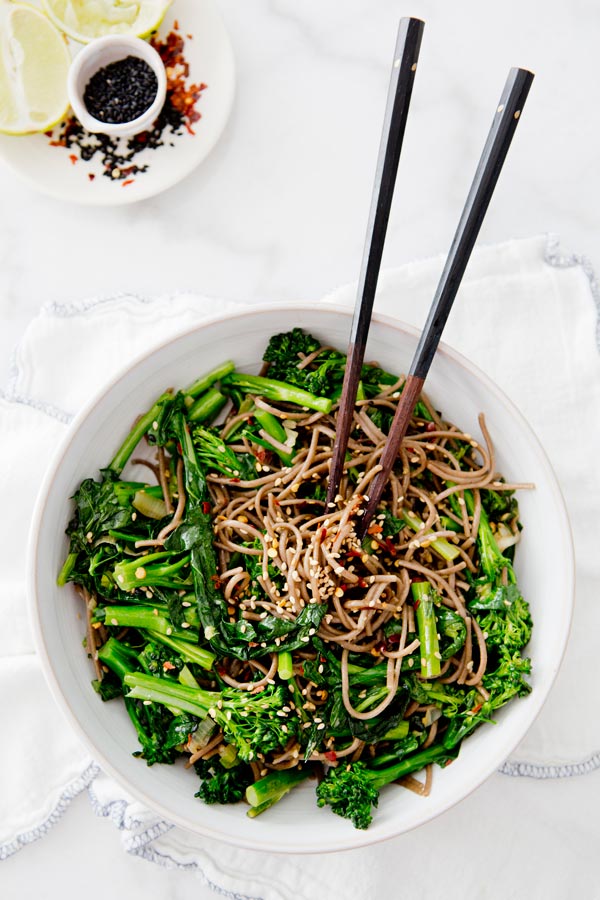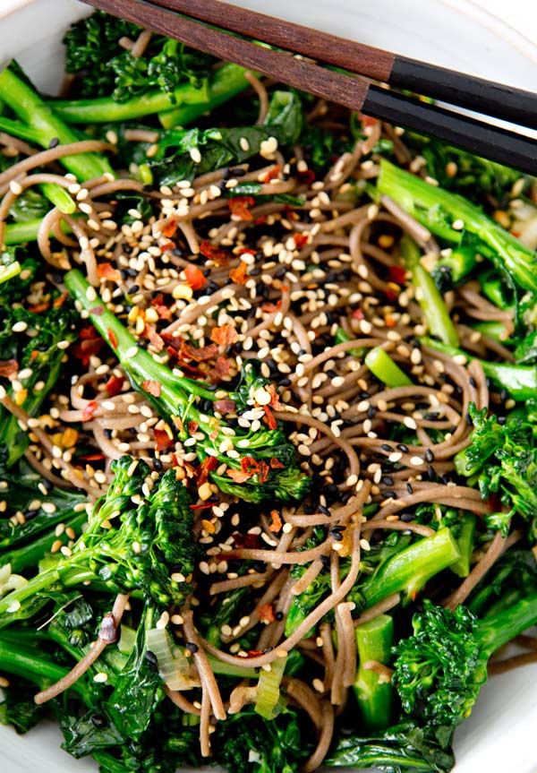 I love the pepperiness of rapini -- such a great combo with the earthiness of the soba noodles!