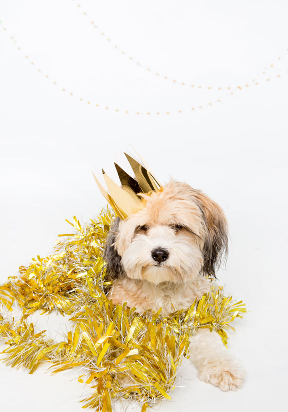 we opted for the classic gold garland, reindeer antlers and a sweet little bell collar that our friend farra sent us in the most beautifully branded holiday package i ever did see! *outtakes that are not to be missed here
