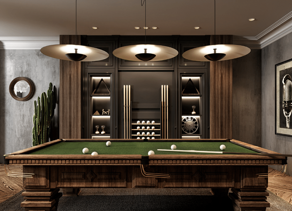 Ensure that there is ample storage for cues, balls, and other billiard accessories. Built-in cabinets or storage units can help keep the room organized and clutter-free.
