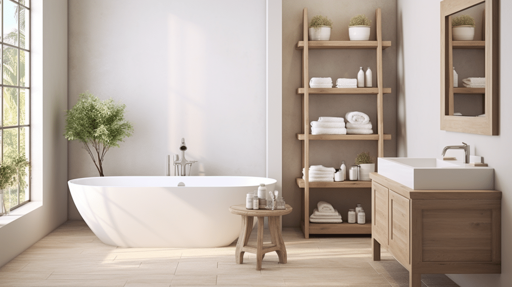 Neutral tones in your bathroom create a calming backdrop. They set the stage for a variety of styles, from modern to rustic.