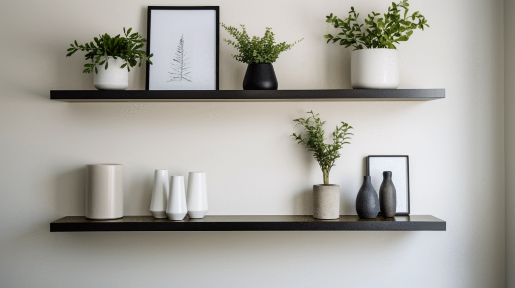 Place a small potted plant on the corner of the shelf to add a touch of greenery.