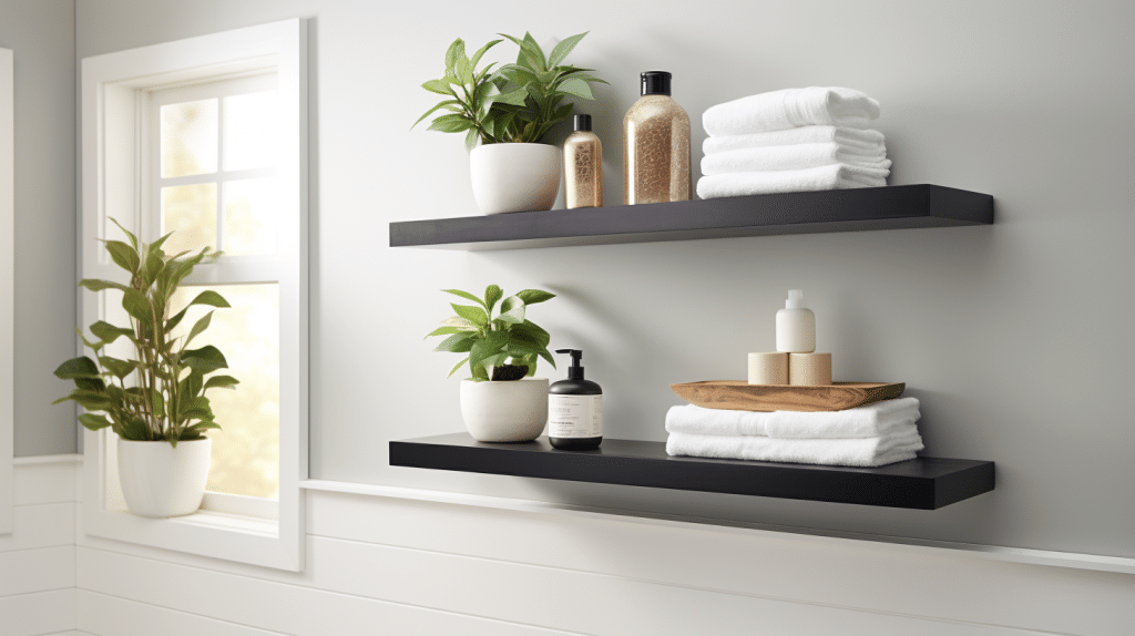 Choose the right tones and themes for your bathroom shelves to complement other bathroom decor.