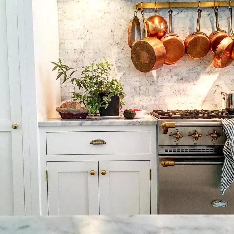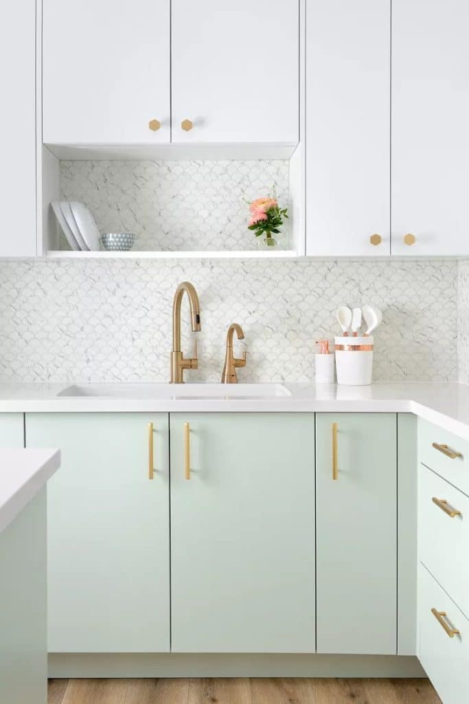 A White marble backsplash paired with gold accents is a combination that takes the award for the most luxurious kitchen setups out there. Elevate your kitchen space by pairing white with gold hardware, creating a rich and warm vibe in your kitchen.