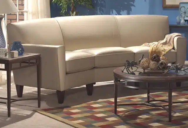 If you don’t have a lot of space, you could get a small traditional-style sofa, also known as a settee. They offer all the elegance and coziness of a full-size sofa in a scaled-down design that is ideal for a bedroom, workplace, or anywhere you wish to add a small, comfortable landing spot.