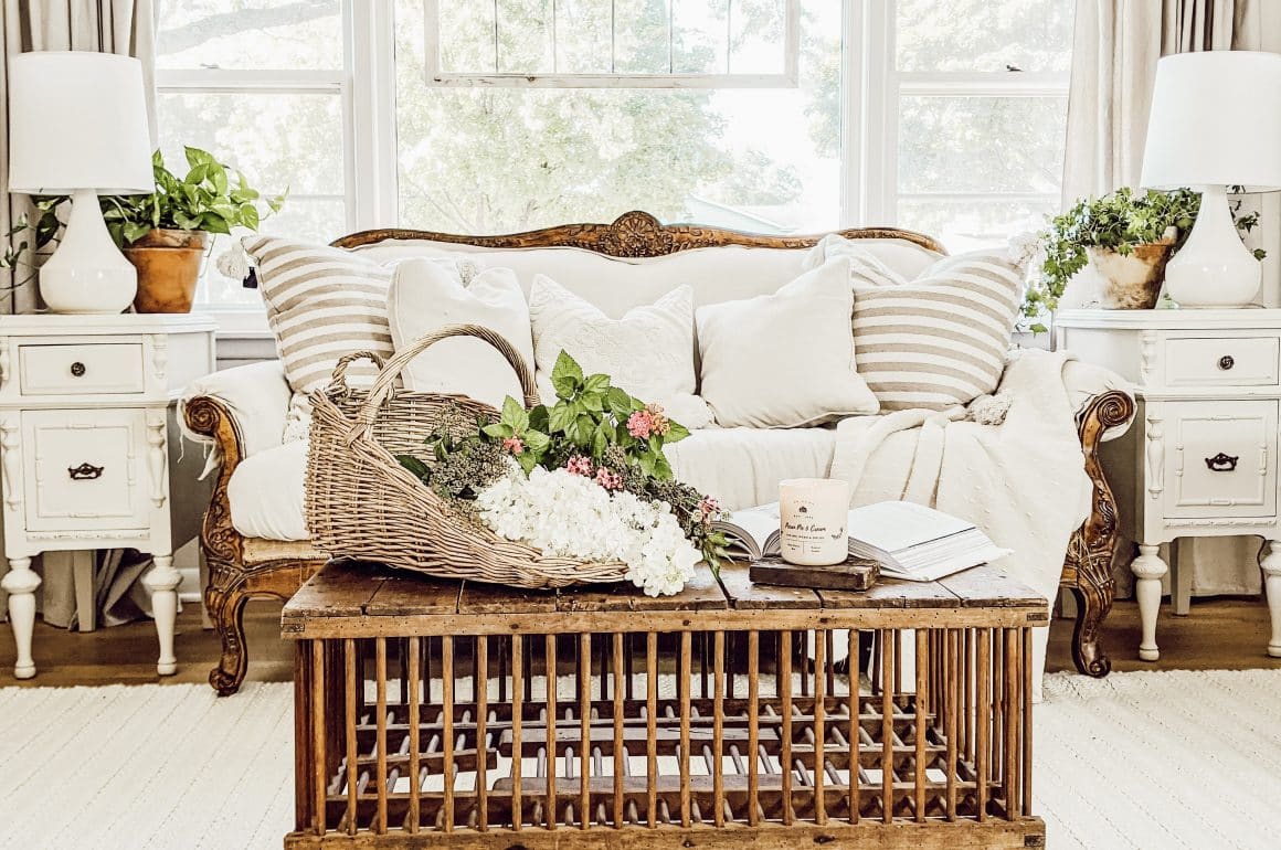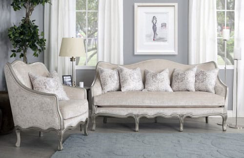 A sleek French cabriole sofa will enhance the charm of your living room. It frequently has lovely carvings on its exposed wood frame, which look excellent painted for a more feminine feel or left natural for a French rural atmosphere.