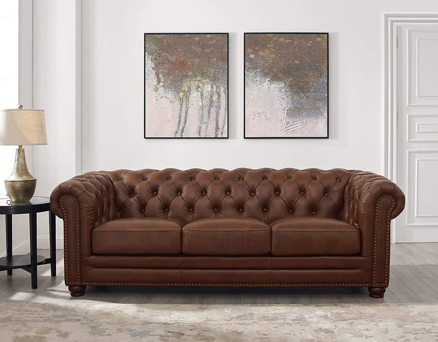 - Stone & Beam Bradbury Chesterfield Tufted Leather Sofa Couch