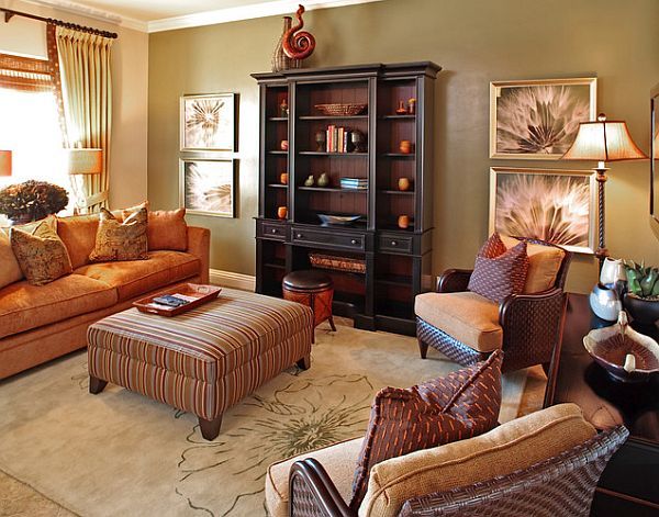 Fall-colored flowers help in adding a modern floral look to the living room. The unique shapes and colors of the flowers will give the room a beautiful visual effect. The flowers like African daisies and mums will make the room and house look more alive and fresh in the dry autumn season.