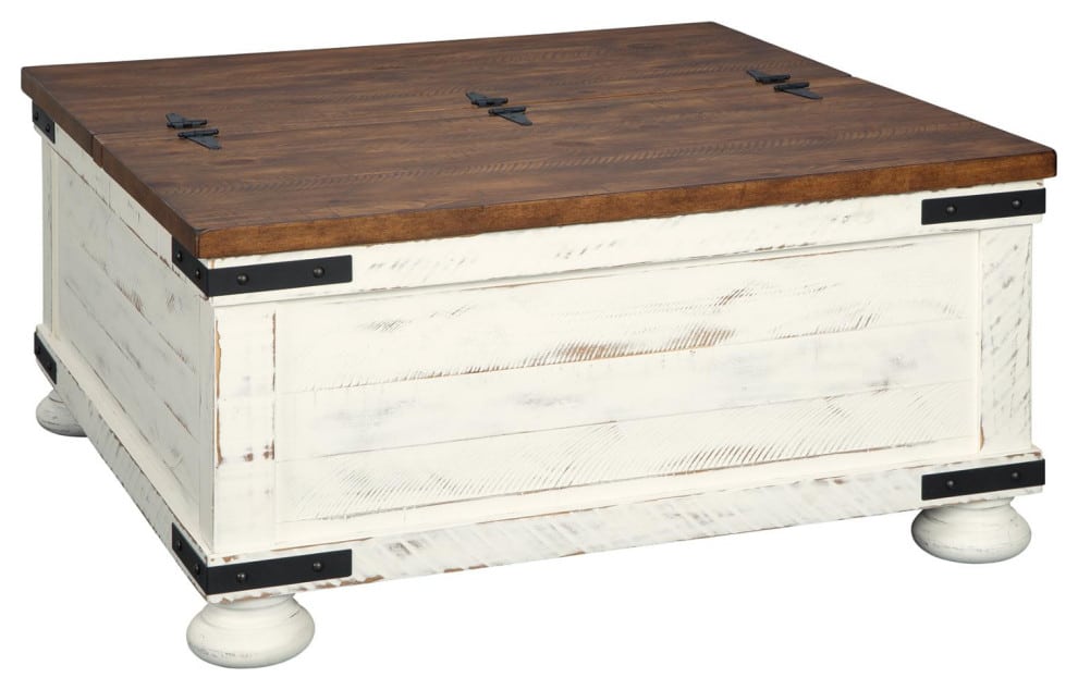 Featuring a weathered gray finish, this coastal coffee table complements your beach-themed indoor living room decor like none other. It features a functional lift top that makes it easy to work and eat from your sofa. Underneath the tabletop is a storage compartment that is ideal for your throw blankets, board games, and magazines. The faux drawer handles also add an extra layer of charm to the table.