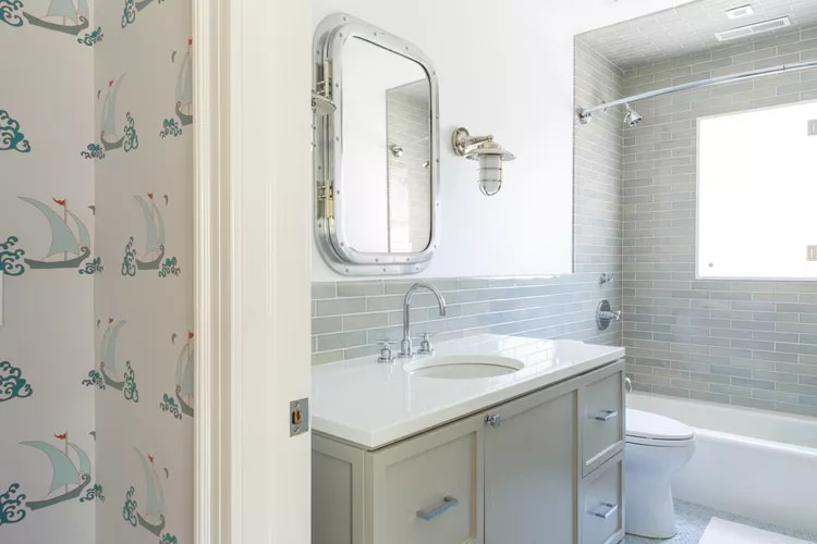 You can bring in shiplap walls, and trough sinks in that process. Nautical bathroom ideas in terms of striped towels, fish art, sailboat wallpaper, painting the walls with a theme, changing the light fixtures, and positioning new mirrors with ship accents are all workable solutions.