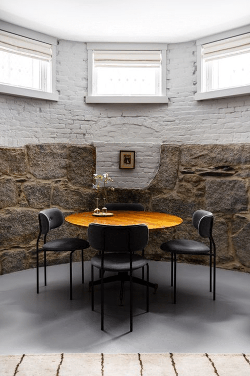 The theme of home décor is being minimalist. Here in this design, there is a small table and three lightweight chairs. A cobblestone theme dominates the wall décor, and the furniture matches the theme. This type of breakfast nook can be created at any corner of your house, but near windows could be suitable, anyways.