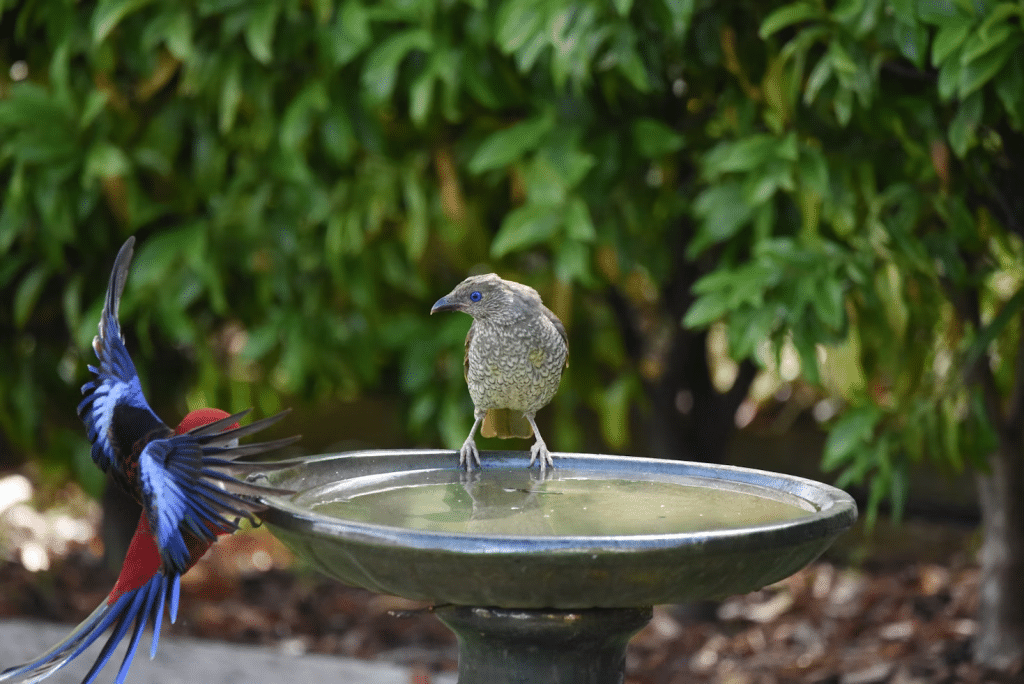 A small decorative urn or bubbler with circulating water can instantly boost the space’s tranquility while acting as a perfect distraction from other sounds. In addition, the sound of splashing, dripping, or flowing water can attract the birds and wildlife you desire to have in your outdoor oasis.