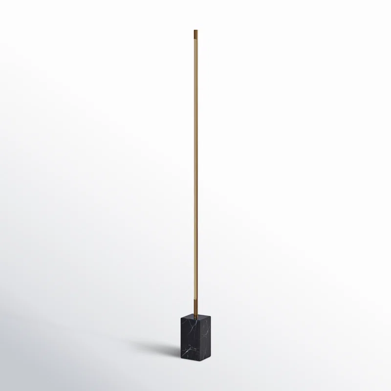 This floor lamp exemplifies bright minimalism. Its marble plinth base grounds the design, while the linear metal shade and integrated LED bulb deliver a clean, focused glow. With dimming capabilities at the touch of a switch, it’s both a practical and stylish addition to your living room.