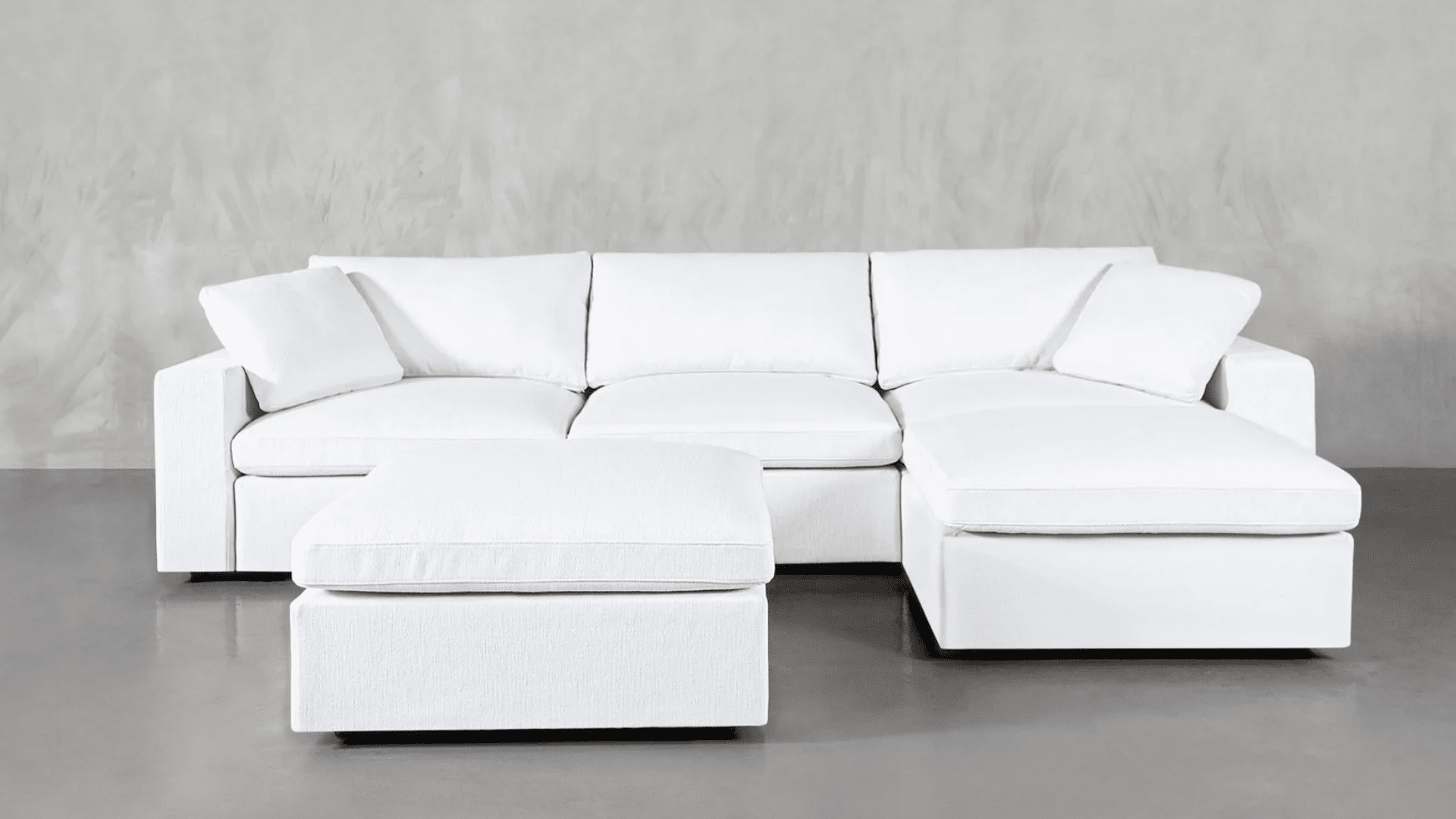 This is the brand’s most popular piece. It’s designed to be flexible and adjustable, allowing you to rearrange the sections to fit your space. Whether you want a small couch or a large sectional, you can customize it over time. The deep seating and plush cushions make it perfect for lounging, and the stain-resistant, machine-washable fabric makes cleaning easy.