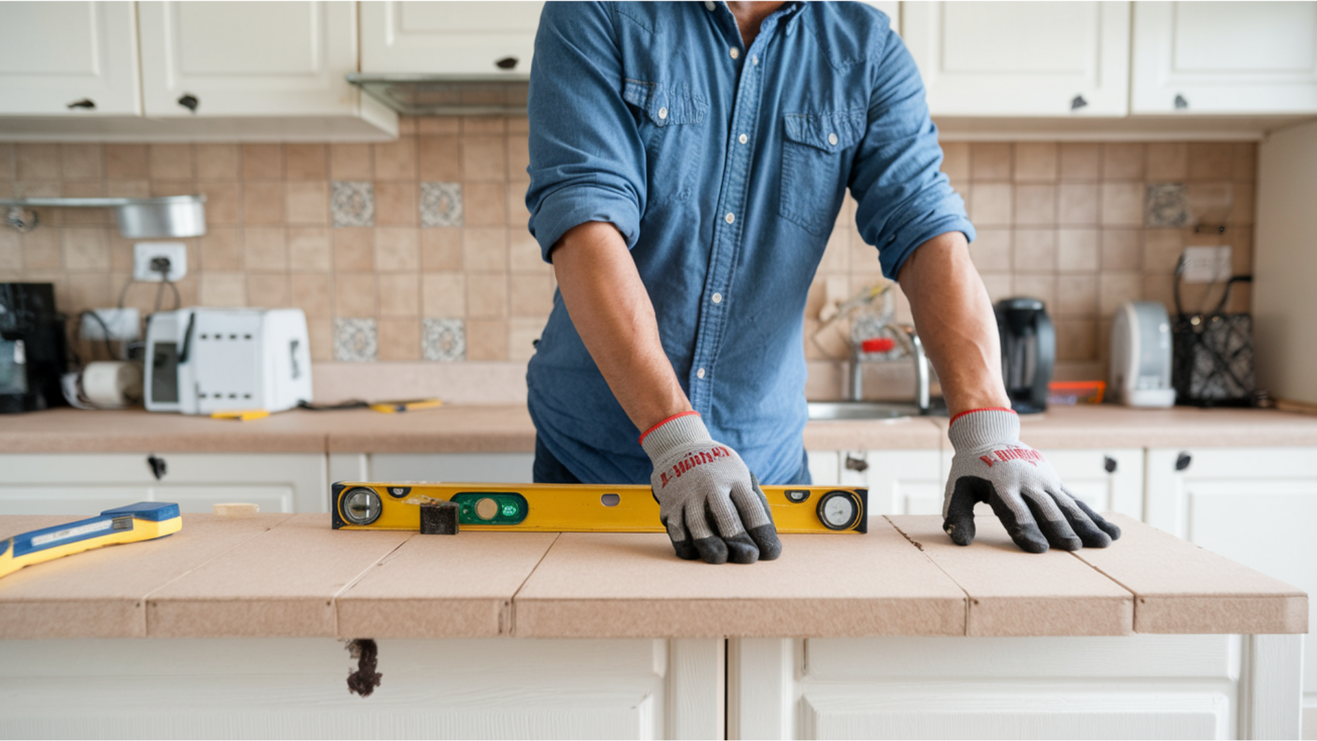- Use a level: Always check that the counter is perfectly level across all sides. An uneven counter will not only look awkward but can also cause issues with water drainage and misaligned appliances.