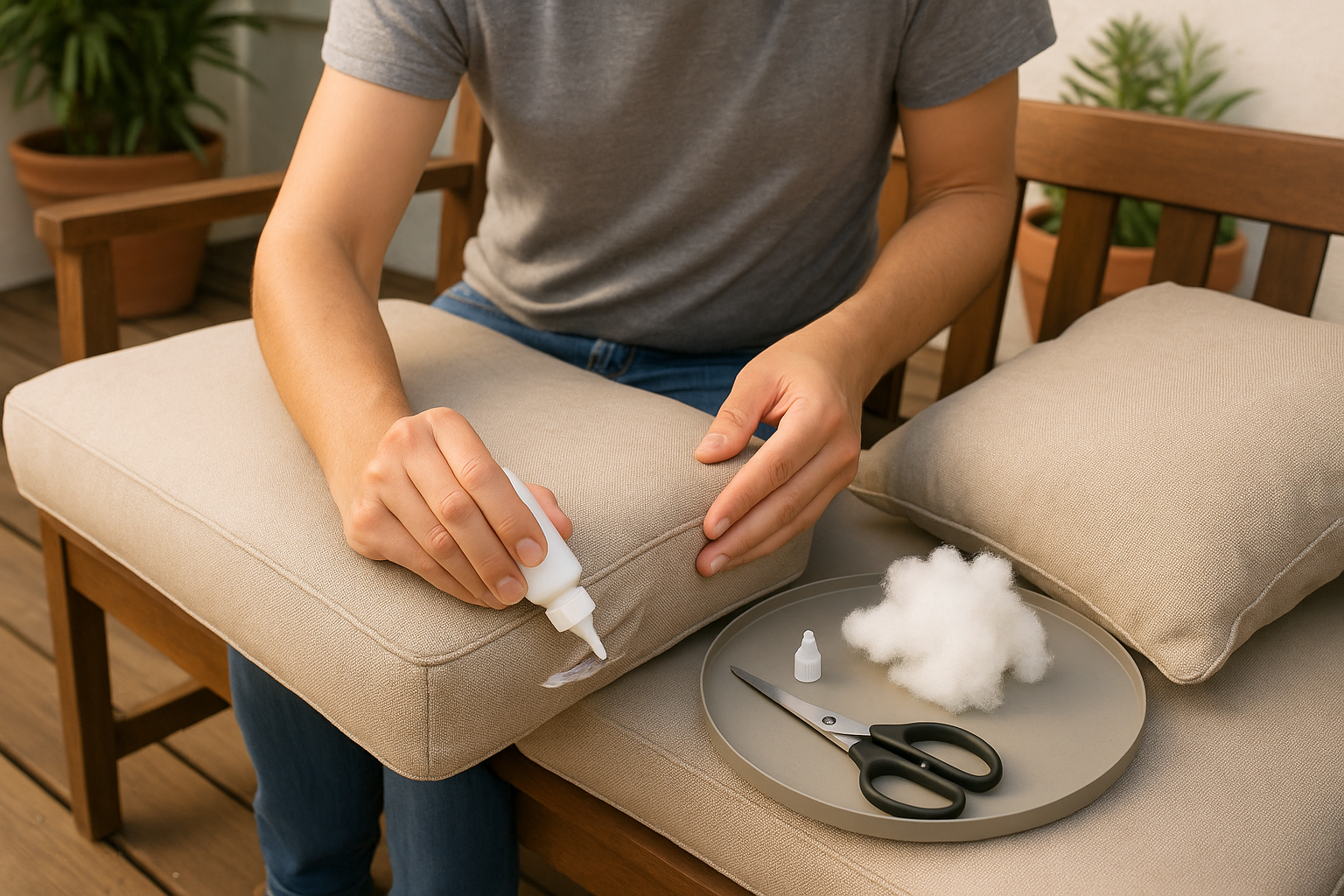 Take a close look at the cushions to check for any damage or wear. Patch small holes or tears using fabric glue and allow it to dry completely.