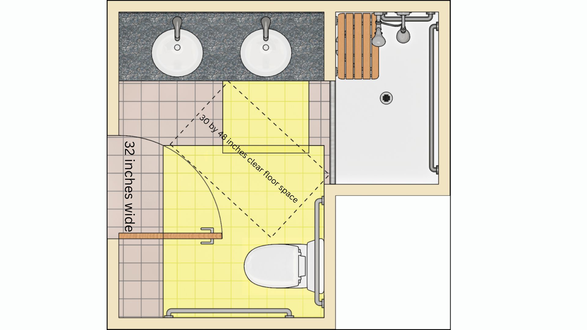 Toilets must be easily accessible and usable for everyone, including individuals in wheelchairs or using walkers. Clear space helps with turning and transferring. Accessible toilets should be 17 to 19 inches high from the floor to the seat.
