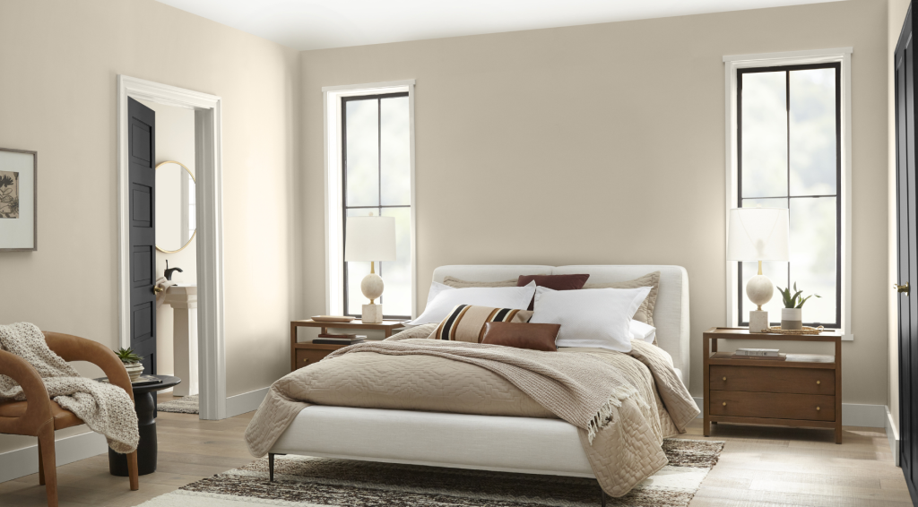 Alabaster belongs to Sherwin-Williams’ neutral collection. It’s known for its warm, creamy base that makes any space feel bright but not harsh.