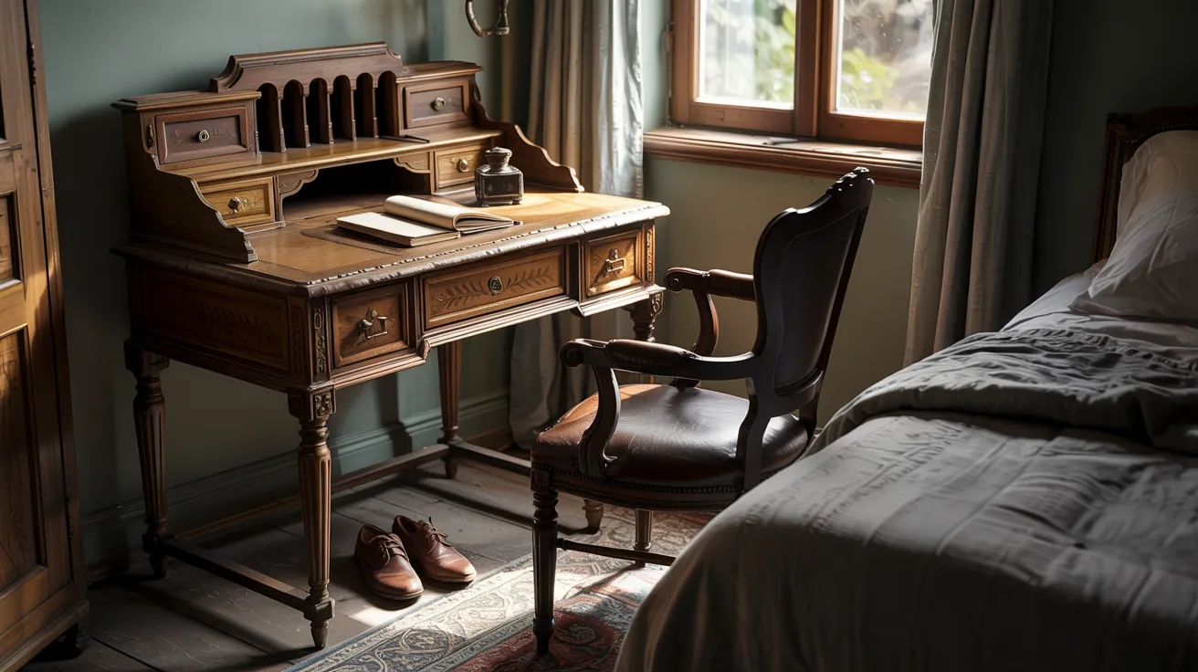 Feather pens, blotting pads, or sealing wax add detail to a writing desk. These items suggest thoughtfulness and tie into themes of learning and reflection.