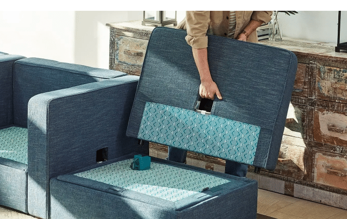 Besides the layout, these Lovesacs come with top and bottom storage, which is usually out of sight. There is storage under every single bottom, and you can choose to purchase top storage if needed. In the top storage, you just have to move the bottom cushion and open the wooden layer.