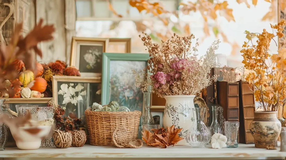 Find items that are vintage, in good shape, and fit your theme, like old kitchenware, signs, or small furniture. Clean them up before placing them.