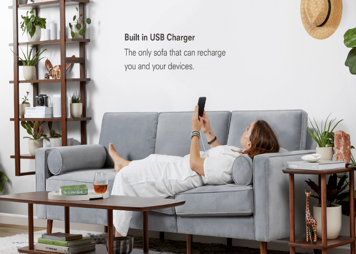 Providing custom-made features like changing fabric color, arm height, and leg style, Burrow sofas can be altered according to your room, ambiance, and portability. The modular design allows you to expand or shrink the sofa and provides an optional sleep kit in case you have unexpected visitors. The sleek and stylish design also includes a built-in USB charger for added convenience.