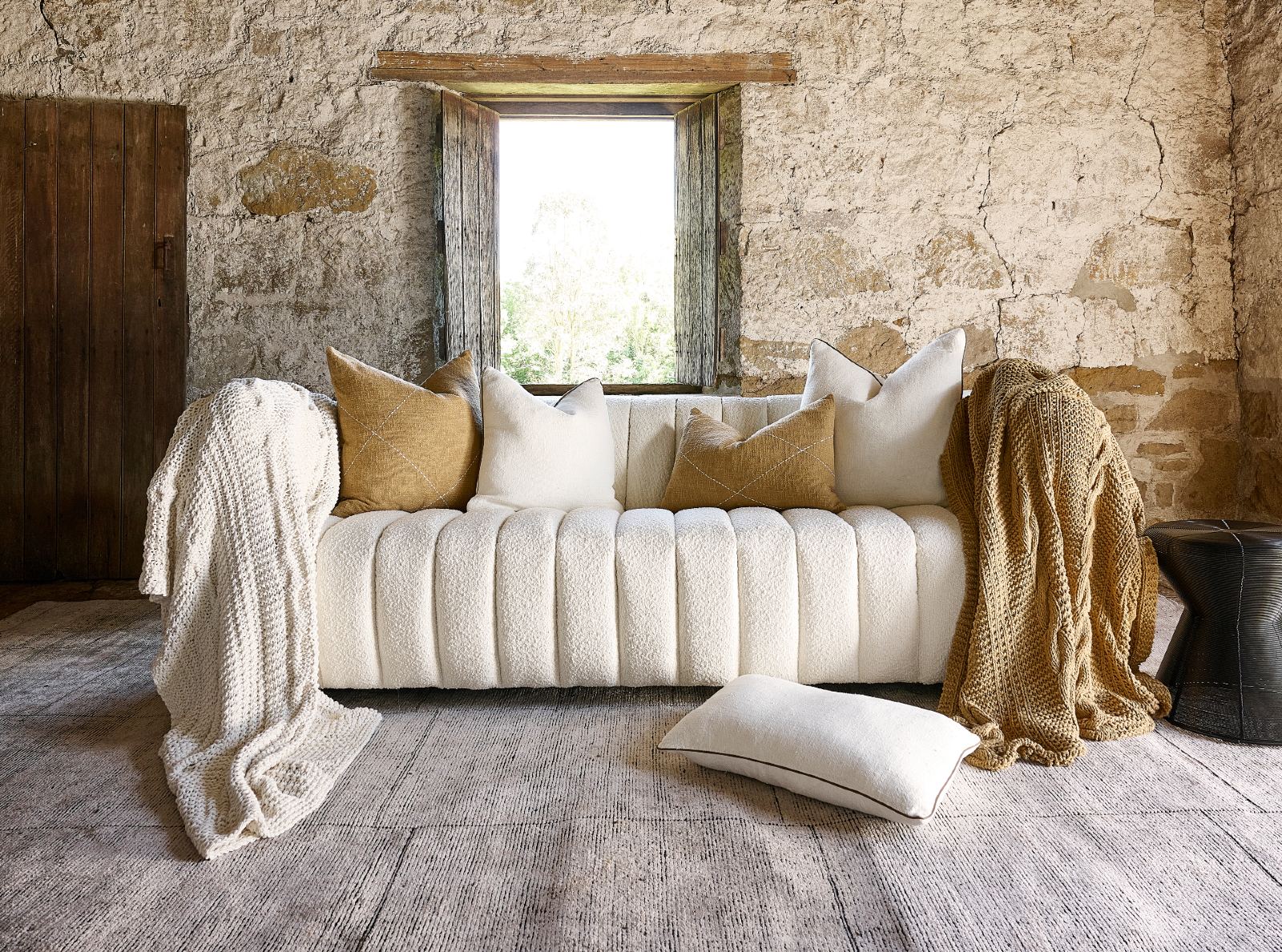 If you are willing to stretch your budget, you can also find trendy designs with modern undertones of CB2 sofas (which is a subsidiary of Crate & Barrel). The sustainable hardwood frames, stylish Bouclé upholstery swatches, and classic channeled tufting incorporated with the coastal design make the sofa look Instagram-ready.