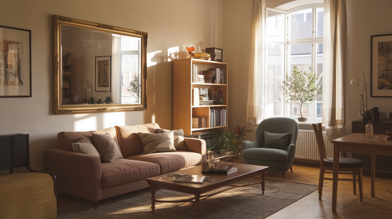 A mirror doesn’t just decorate, it bounces light around and makes the whole room feel wider. Hang one across from a window if you can, and you’ll notice the difference right away.
